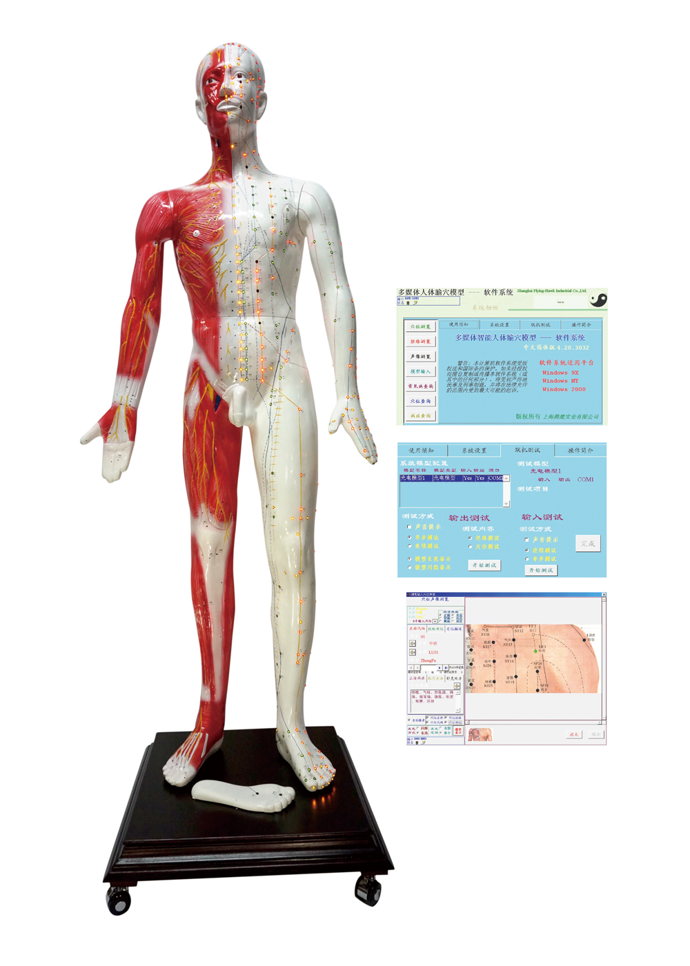 多媒體人體針灸穴位發(fā)光模型... 該系統(tǒng)融計算機技術(shù)、電子控制技術(shù)、多媒體技術(shù)、腧穴理論于一體;聲音、屏幕、人體模型同步控制筋絡(luò)腧穴的信息;顯示十二經(jīng)脈循環(huán)流注,經(jīng)脈絡(luò)屬表理對經(jīng)關(guān)系,特定穴的分布;加之屏幕表層、淺層、深層穴位解剖圖的配合,常見病的辯施治,隨證選穴的查詢及處理輸出,使學(xué)員對人體經(jīng)絡(luò)腧穴信息有更全方位的了解,更有利于加深印象與理解掌握;同時,亦可用于臨床與科研參考。